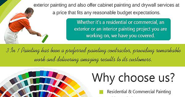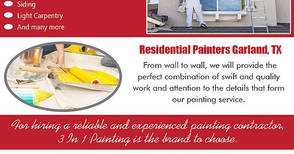 Find the Best Residential painters Garland, TX for your home at http://3in1paintingtx.com/ Find Us On : https://goo.gl/maps/KxffHUzysZn The majority of house painting companies employ not basic workmen yet artisans who have years of training as well as experience with them. From being experienced concerning the sorts of paint for various surface areas to the most effective color pattern ideal for your residence, the most effective Residential painters Garland, TX could guarantee you of a well-remodeled house. You must ensure that you get the best person or company as well as there are great deals of types of painters as well as specialists varying from large companies to people. My Social : https://www.pinterest.com/inpaintingtx/ https://medium.com/@3in1paintingtx https://www.behance.net/3in1paintingtx https://en.gravatar.com/3in1paintingtx 3 In 1 Painting Garland, Texas 75041 Phone : (469) 685-4546 Or Send us SMS at: (469) 685-4546 Working Hours- Monday To Saturday : 7:00 AM–7:00 PM Sunday Closed Deals In.... Commercial Painting Garland, TX Drywall Contractor Garland, TX Exterior Painting company Garland, TX House Painting service Garland, TX Interior Painting services Garland, TX Local Painters Garland, TX Painting Company Garland, TX Painting Contractors Garland, TX Professional painters Garland, TX Residential painters Garland, TX